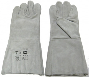 Краги спилковые пятипалые выполнены из однородного спилка КРС шлифованного и неокрашенного. Толщина